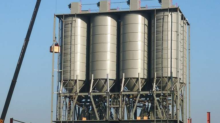3:粉料倉頂除塵,采用大面積除塵器(34平方),過濾材料為高質量的針刺尼濾袋,清灰效果好,不容易粘接堵塞。