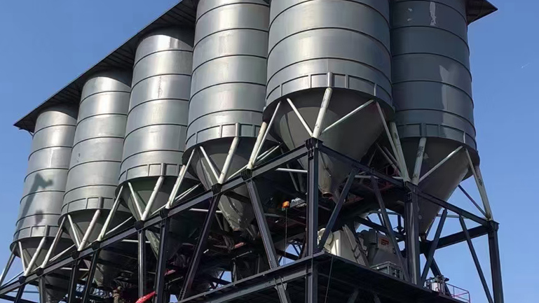 2:新設計的封閉型骨料預存斗,配備大風量脈沖除塵器,降低粉倉飛散,提高了除塵效果。