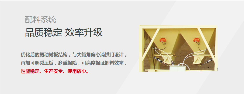 3:骨料放料采用防卡弧門,并采取沿皮帶機方向的長方口下料方式,既保證下料順暢又保證不撒料。